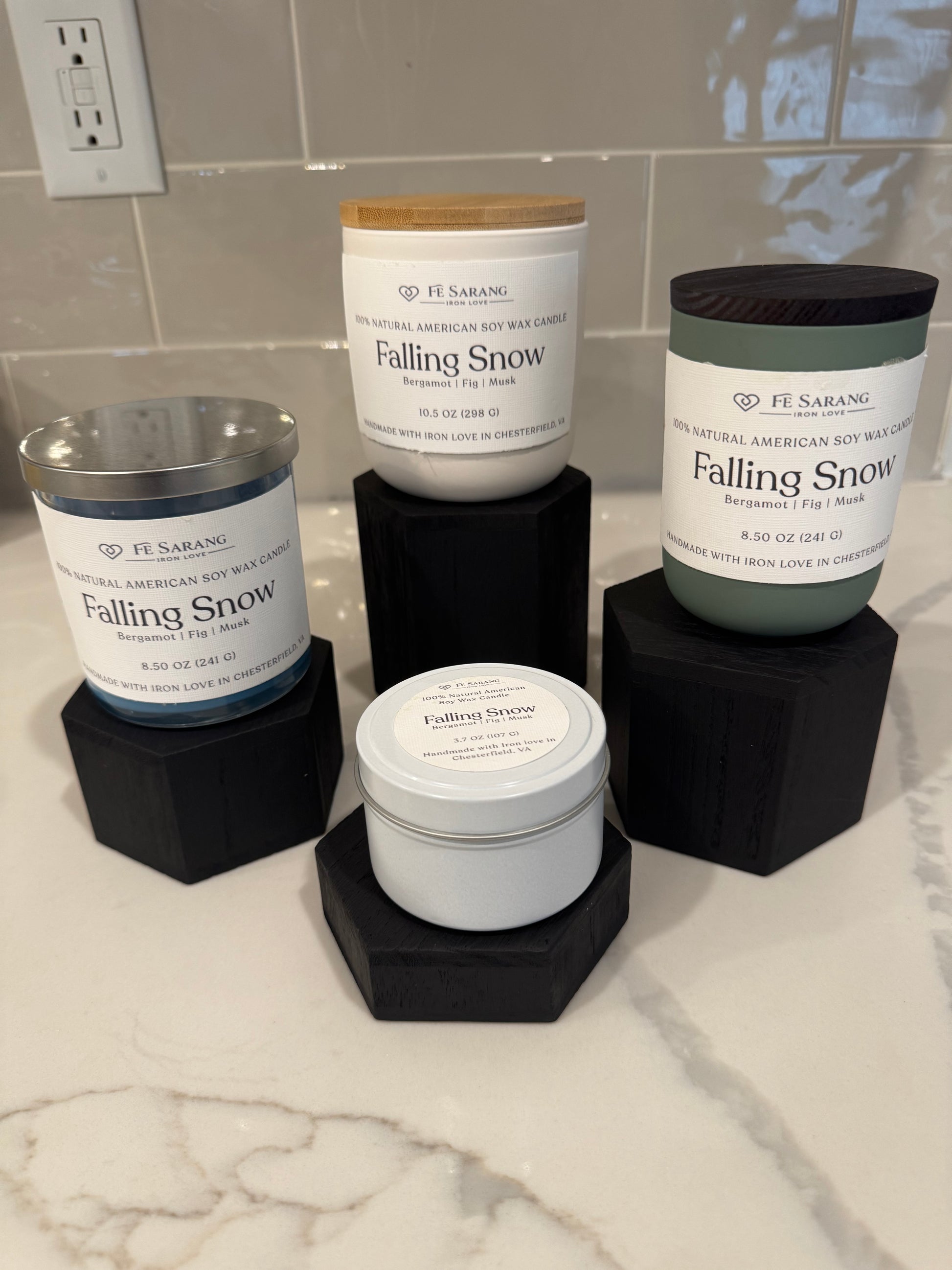 A moment of stillness. A breath of crisp winter air. Falling Snow captures the serene magic of the season — where fresh eucalyptus and cool bergamot drift through notes of green ivy, fig, and soft rose, grounded in the gentle warmth of amber and musk.